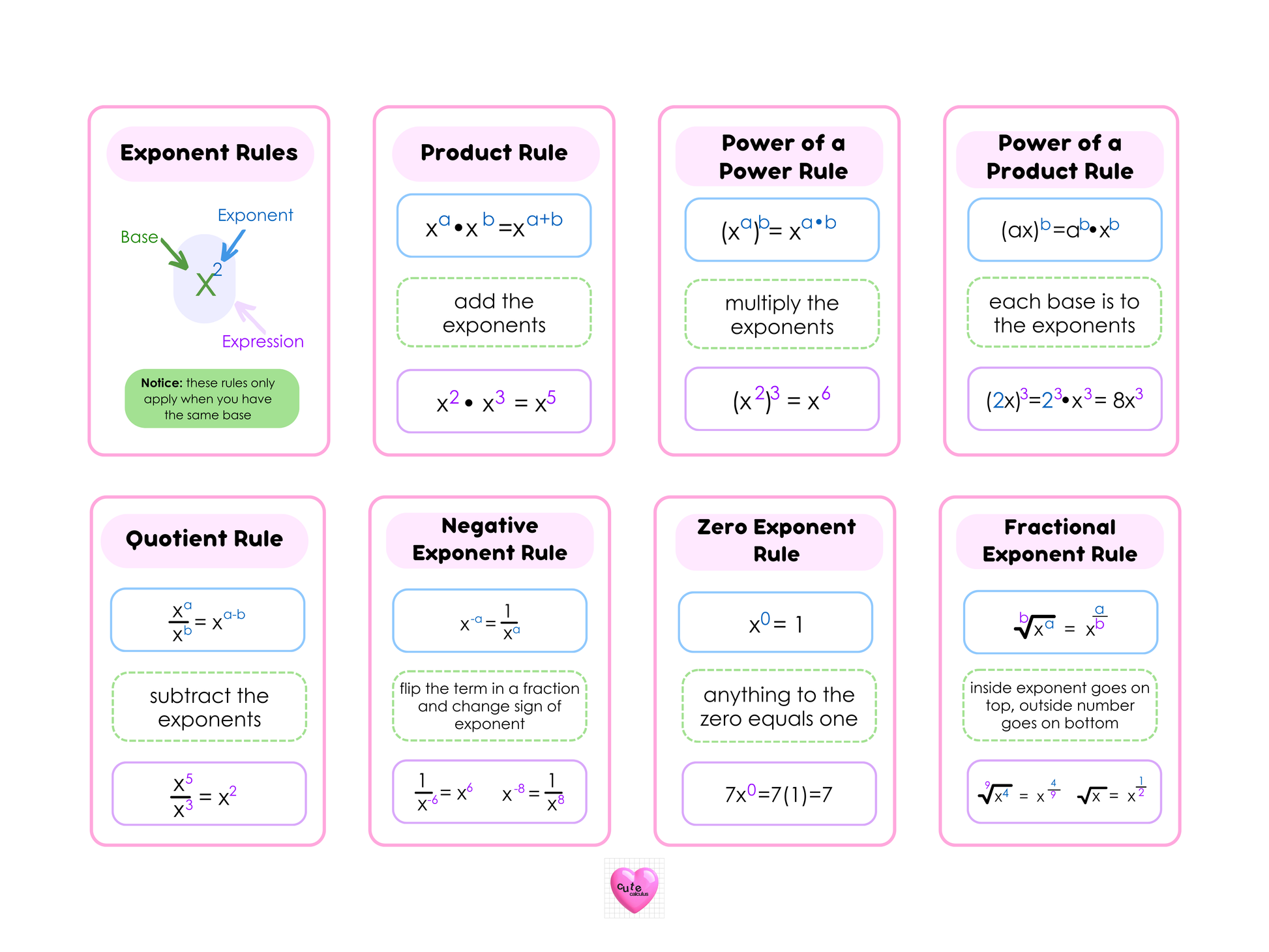 โจ Cute Calculus: Exponent Rules Reference Sheet โจ