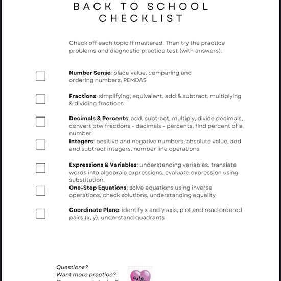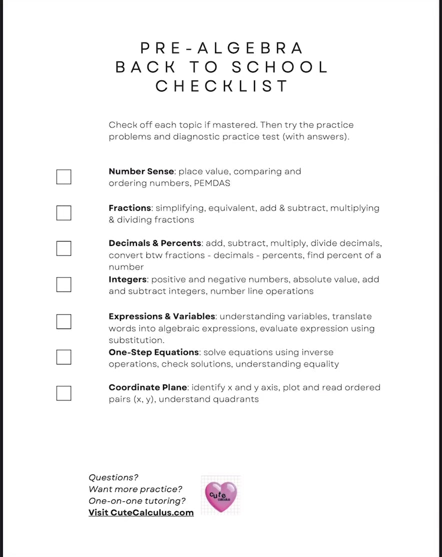 ✔ Pre-Algebra Back-to-School Mastery Checklist